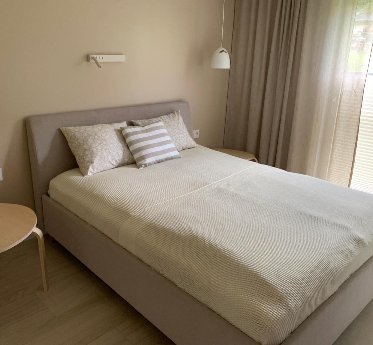 Apartament z 3 sypialniami. Jest to apartament z kominkiem i sauną. Ten przestronny apartament mieści salon, 3 oddzielne sypialnie oraz 2 łazienki z kabiną prysznicową i suszarką do włosów. W dobrze wyposażonej kuchni przygotowano płytę kuchenną, lodówkę, zmywarkę do naczyń i przybory kuchenne. Apartament jest klimatyzowany. Udogodnienia obejmują część wypoczynkową, pralkę, telewizor z płaskim ekranem i dostępem do kanałów satelitarnych oraz zestaw do parzenia kawy i herbaty. Z okien roztacza się widok na ogród. W tej opcji zakwaterowania znajduje się 6 łóżek. Apartament - 9 osobowy. Powierzchnia pokoju ok.: 95 mkw.