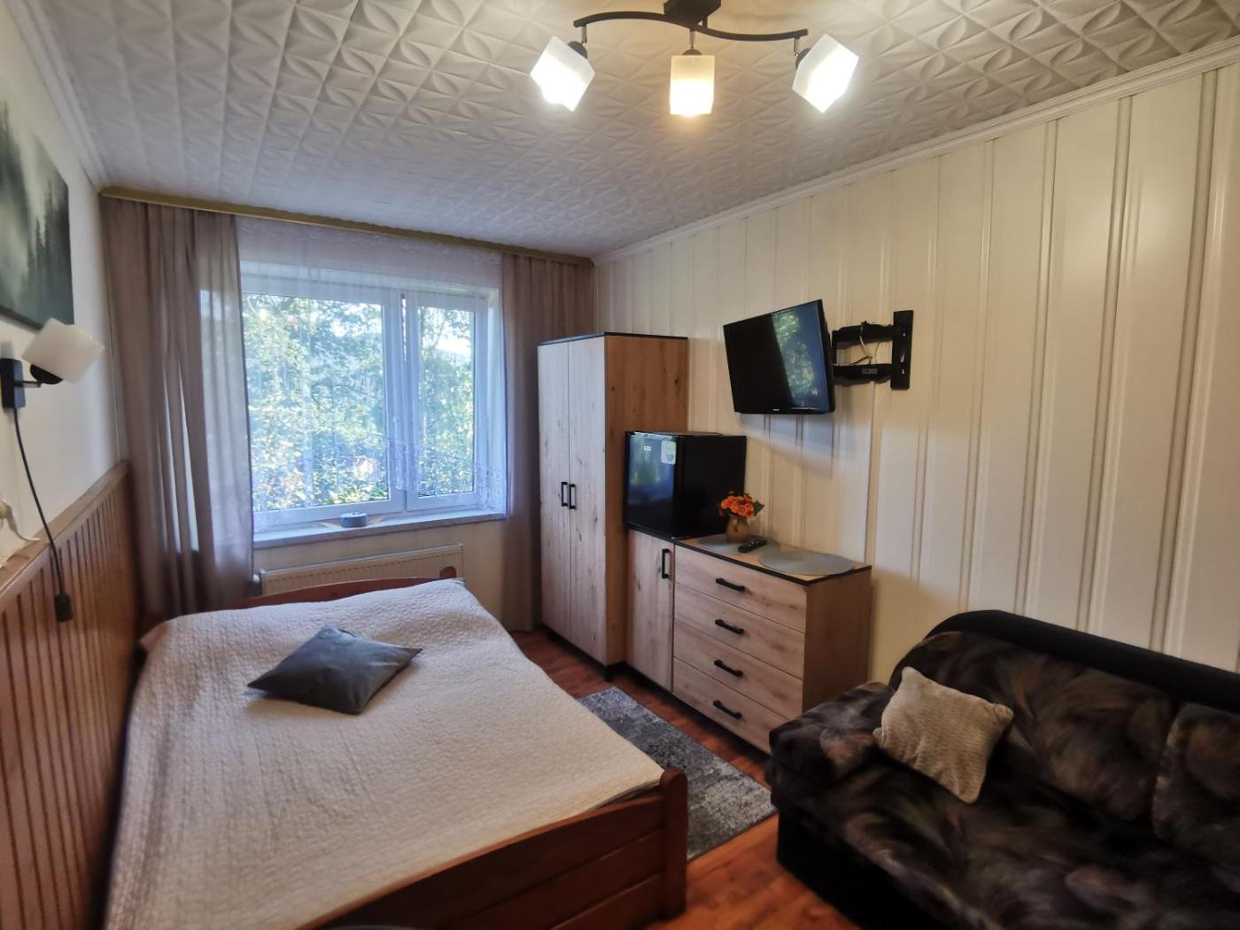 Pokój trzyosobowy. The triple room provides a wardrobe and an electric kettle, as well as a private bathroom featuring a shower. This triple room offers heating, a flat-screen TV and mountain views. The unit offers 2 beds. Pokój Trzyosobowy - 3 osobowy. Powierzchnia pokoju ok.: 19 mkw.
